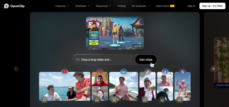 Best for: Creators with existing long-form content who want intelligent clip extraction