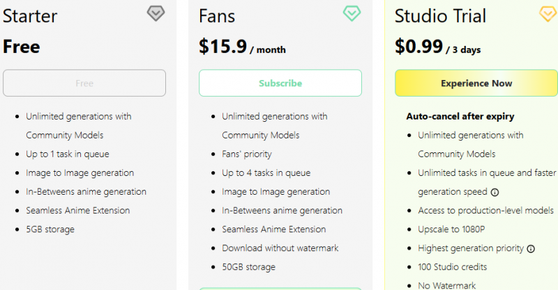 The free plan works but has limits. Studio and Pro unlock high resolution, faster servers, and multi-scene control.