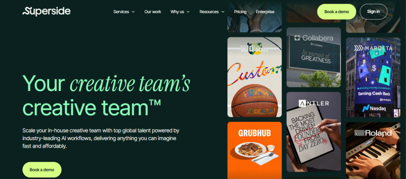 | Superside | 6,000 dollars per month | Enterprise human plus AI creative service | No | Yes |
