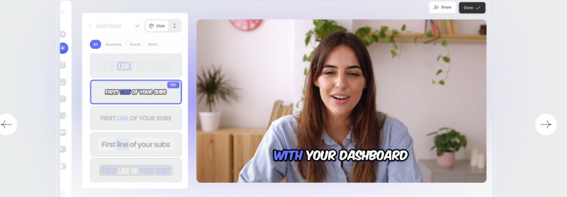 VEED is a browser-based editor that works well for teams and business users. It is especially strong for subtitles, translations, and collaborative workflows, which makes it a practical alternative for content that needs to be fast and polished.