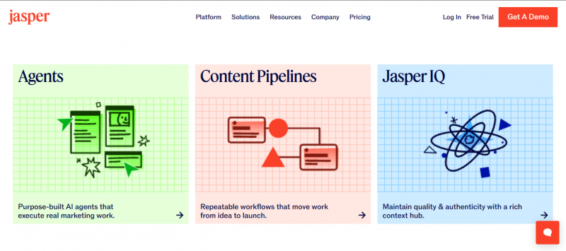 Jasper remains closer to a classic AI writing assistant, but one designed for serious content teams. It focuses on long-form articles, landing pages, product marketing copy, and brand-consistent content across channels. Brand Voice, Knowledge, and Campaigns keep messaging aligned, and SEO integrations like SurferSEO support search-driven content programs.