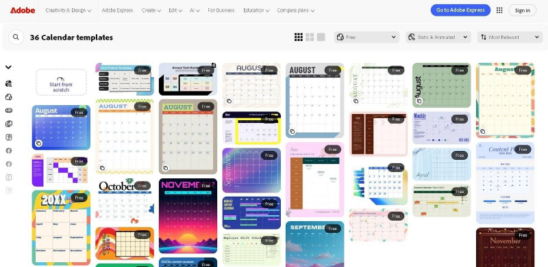 Some of the best and easiest tools to create custom calendar design include Adobe Express, Canva, Fotor, VistaCreate, and others. They come with preset calendar layouts for monthly, weekly, and yearly formats. You only need to select a template that matches your taste and then begin personalizing it.
