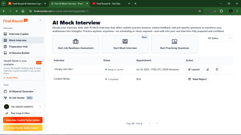 Final Round AI sits at the higher end of pricing for interview preparation platforms. Subscription costs are significant and the trial version tends to be very limited, which makes it hard to evaluate the entire feature set before paying.