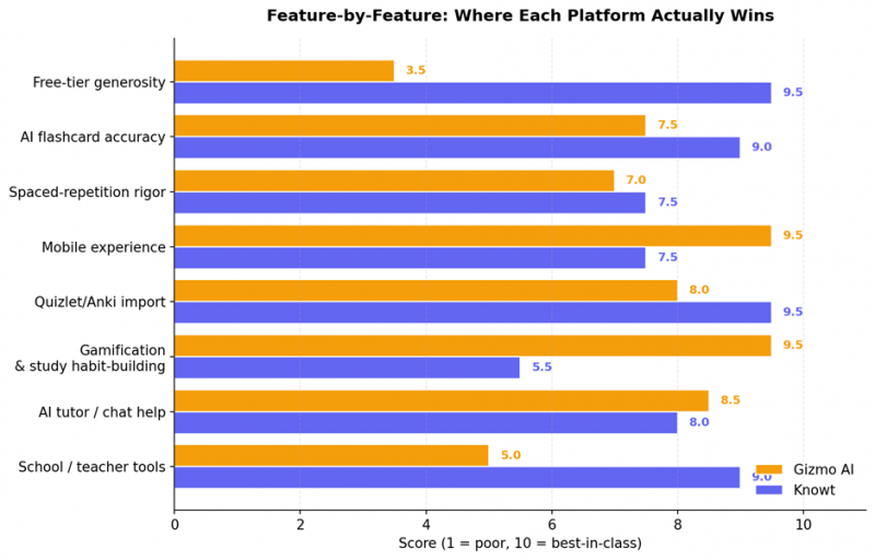 | Decision factor | Gizmo AI | Knowt | Winner |