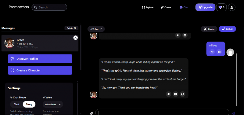 I tested a pre-built character named Kim, described as having a confident, teasing personality. What followed was genuinely not what I expected from an AI chat. The responses were fast, the tone was consistent, and there were none of the robotic phrasings that make some AI chatbots feel obviously mechanical. It felt more like texting someone who already knew me.