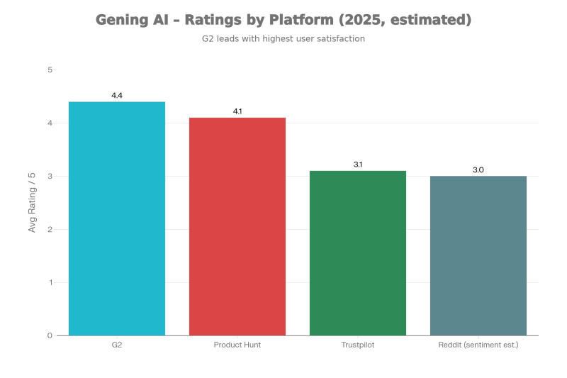 | Trustpilot (gening.ai) | ~3.0–3.2/5 | Very few public reviews (≈3) |