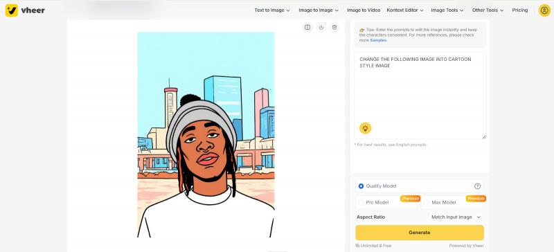 Structurally, the tool followed instructions. The subject remained intact and the cartoon transformation clearly applied. For quick stylistic conversions, the feature is functional.