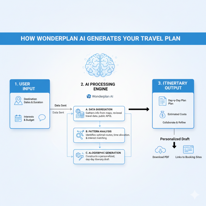 Wonderplan AI is a web-based travel planning platform that uses artificial intelligence to generate itineraries based on user input such as destination, duration, budget level, and interests.
