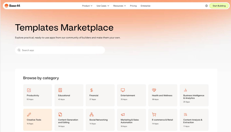 Base44, a leading app builder, offers straightforward app templates with a professional framework ready to use. Each template comes with essential features and built-in tool integrations. Need a productivity or financial layout? They have it. Looking for a booking system? That’s covered too.