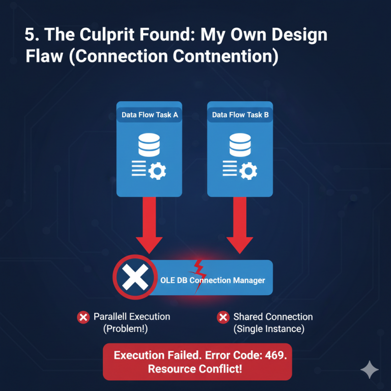Dedicated Connections: To avoid the connection contention that gave me that 469 nightmare, I make sure every parallel task gets its own instance of a Connection Manager object, even if they point to the same database. This prevents resource fighting.