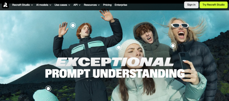 Recraft is tuned for professional visual work. It generates vector and raster graphics with a focus on brand consistency and clean lines, which matters for logos, icons, and product visuals.