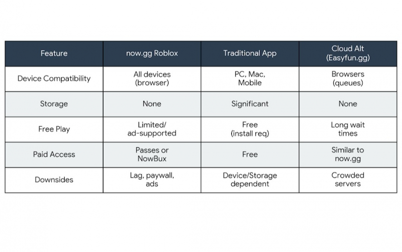 now.gg Roblox shines when you need instant, on-the-go access to Roblox without download hassles. It delivers decent gameplay for short sessions or restricted devices. Yet, common user complaints lag, sudden paywalls, lots of ads, and rough customer support make it hard to recommend as a primary Roblox solution. Check real reviews before making a commitment, and compare alternatives for the best fit.