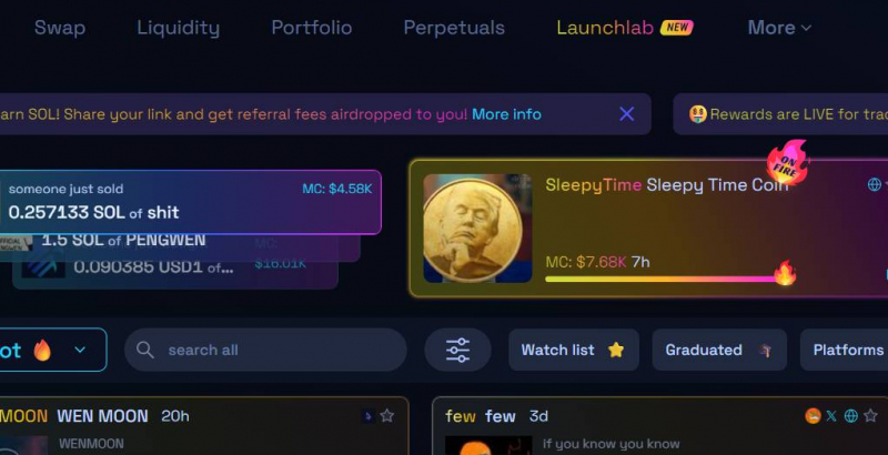Raydium’s Launchpad, also known as LaunchLab, is one of the most popular token launch tools in the Solana ecosystem. While not focused exclusively on memes, it offers a more professional environment for new token launches.