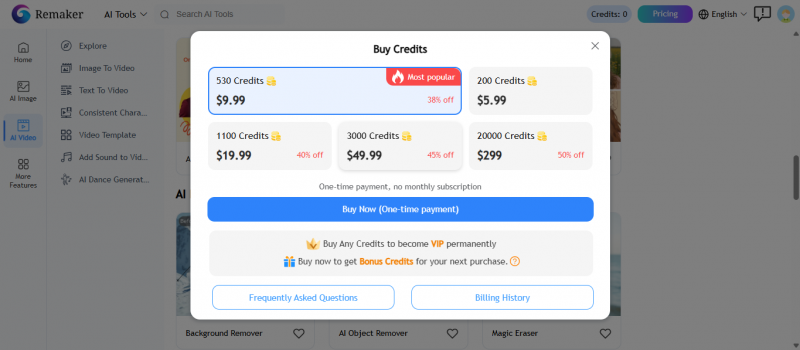 New accounts typically receive around 30 free credits. This is enough to experiment with several face swaps and image remakes before deciding whether to pay.