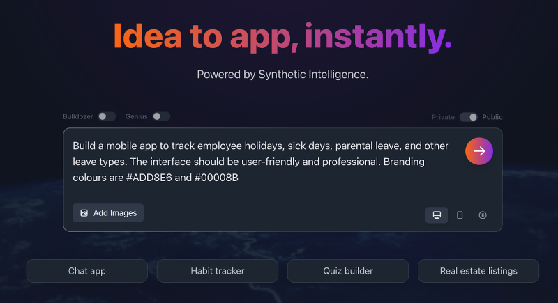 From there, users can continue prompting the AI using a chat box to make changes to the output, all through a simple visual editor. All apps come complete with a backend, database, and hosting, and the user fully owns all code created.