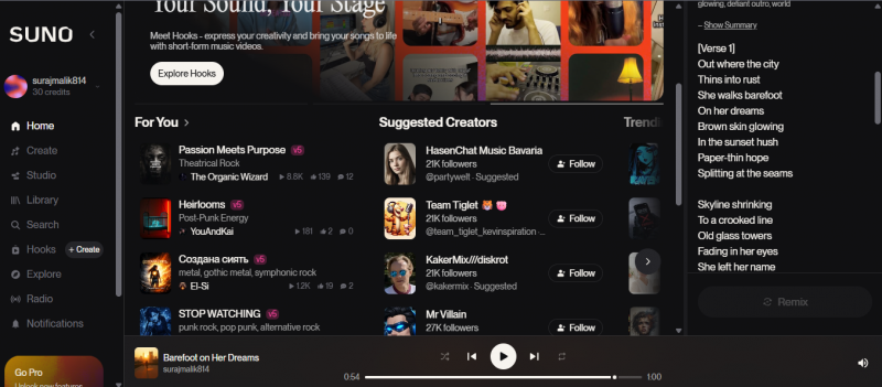 You don’t need instruments. You don’t even need lyrics if you don’t want to write them yourself. Suno handles most of the creative heavy lifting, which is both exciting and slightly intimidating at the same time.