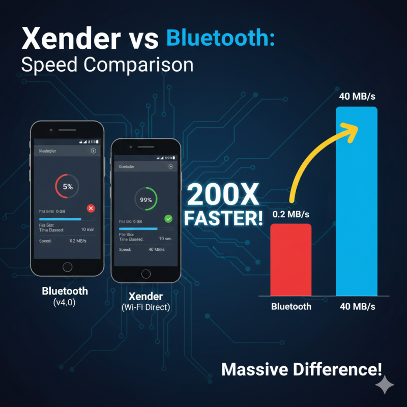 Speed Metrics: Xender consistently advertises speeds up to 40 MB/s, positioning it as up to 200 times faster than legacy Bluetooth transfers. This speed makes sharing large files (like full-length movies or application backups) viable in minutes, not hours.
