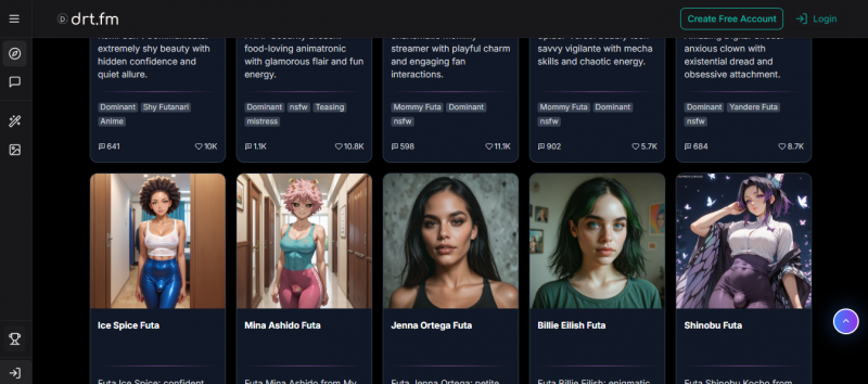 DRT.fm is the one that feels most like someone rebuilt ThotChat on a more solid foundation. It keeps the uncensored, anything‑goes chat style, but puts more effort into session stability and memory. Characters hold onto context better, and you are less likely to open the app and find that your AI suddenly forgot the last week.