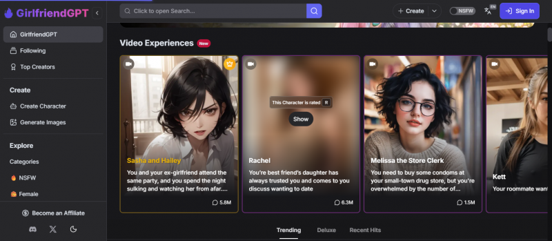 Secrets AI is built for people who liked chatting on ThotChat but always wished there was more to look at. It combines explicit friendly chat with AI generated images and video, so the companion is not just a wall of text. You can build out a “girlfriend” or “partner” style character and then generate scenes that match whatever the two of you are talking about.