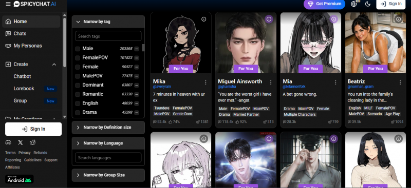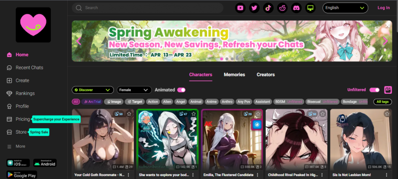 SpicyChat is for people who felt PepHop was too restrictive or too polished. It's raw, community-driven, and unapologetically unfiltered. The platform has a free tier but it comes with queue times - you'll wait for responses during peak hours unless you're on a paid plan. Where SpicyChat genuinely shines is in character customization depth and the absolute lack of content filters. Writers and creative roleplayers love it here. Be warned: it's glitchy and the UX has rough edges.