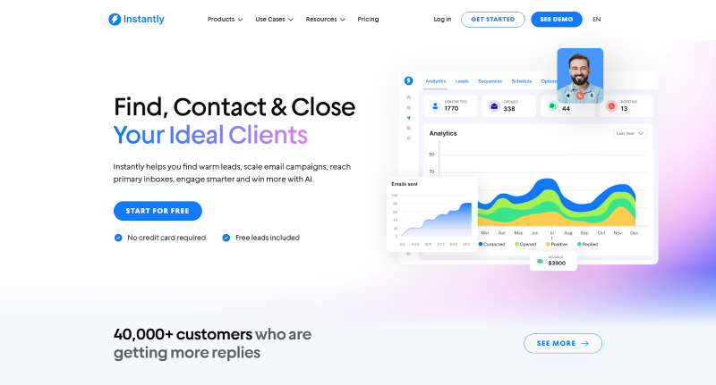 But scale isn’t just about volume—it’s about precision. Instantly combines AI-powered optimization with lead targeting that aligns to your desired reply, click, or open rates. Paired with detailed analytics, the platform helps your team refine campaigns continuously and drive stronger results.