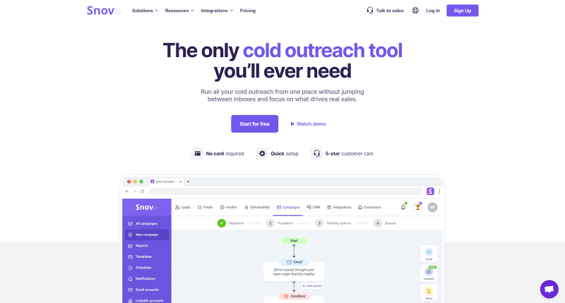 Snov.io stands out with a node-based visual builder, letting you map campaigns and see exactly how prospects move through your pipeline. It also offers LinkedIn automation to help you expand your outreach beyond email and contact professionals directly.