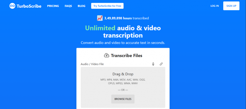 TurboScribe supports many audio and video formats including MP3, MP4, WAV, MOV, AAC, and others.