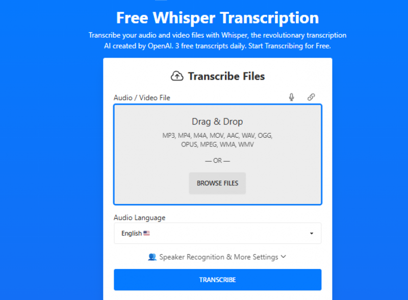 Instead of listening to recordings and typing everything manually, users can upload a file and receive a completed transcript within minutes. The system supports a wide range of audio and video formats, making it suitable for podcasts, meetings, interviews, lectures, and video content.
