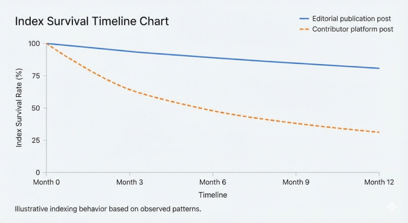 This suggests low editorial oversight, which places the site closer to a UGC-style contributor platform in Google’s classification models.