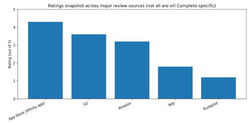 | Trustpilot | xfinity.com | 1.2/5 from 1,790 reviews (Trustpilot) | Many complaints (billing/support) on this platform. |
