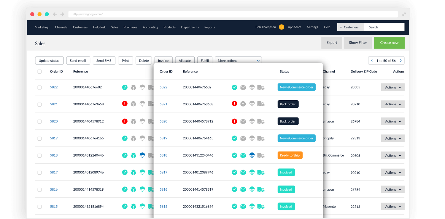 Handles multi-channel retail orders, inventory, accounting, and shipping in one system.