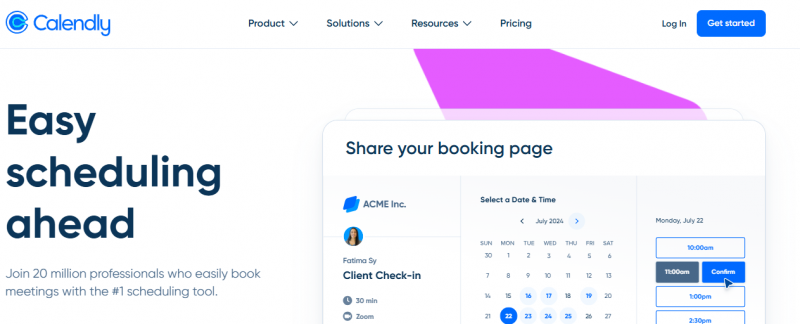 Calendly syncs with connected calendars to streamline meeting booking. Users create a personalized booking page and share their availability; invitees select meeting times from open slots, and Calendly automatically checks for conflicts to prevent double-bookings. The platform connects up to six calendars including Google, Outlook, and Exchange, and integrates with over 100 tools including video conferencing, CRMs, and payment processors. Calendly's core focus is automating the scheduling workflow to reduce administrative overhead and let users focus on meaningful interactions.
