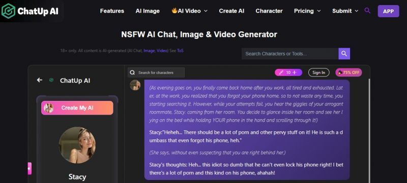 ChatUp AI centered on interactive chatbot experiences combined with creative multimedia generation. According to the official site, the tool lets users chat with advanced AI characters, generate images and videos using AI models, and even design custom AI companions with personality traits all without requiring signup. Core use cases range from conversations to visual content creation, with an emphasis on unrestricted, uncensored interactions powered by generative AI.