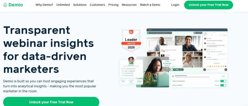 Demio provides a webinar platform that delivers a simple, no-download experience for audiences. It supports live and automated events with registration pages, reminders, and engagement tools like real-time chats, polls, and Q&A. Hosts upload presentation materials such as slides and videos, share screens, add guest presenters, and bring attendees on stage. Virtual backgrounds allow customization with branding. Post-event analytics and attendee reports track performance. The platform integrates with marketing stacks to streamline workflows and reduce setup time.