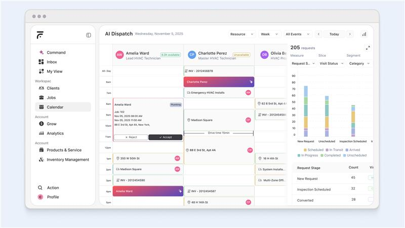 FieldCamp is field service automation software built to run operations, not just track them. The system assigns jobs automatically based on who's free, who's close, and who's right for the work. Customers get confirmations and updates without anyone typing a message. Invoices go out the moment a job is marked complete. Set up a workflow once, and it runs on its own without repeating the same steps every day. Most tools in this space simply digitize the old way of doing things. You still make every decision, click every button, send every follow-up. FieldCamp removes that layer. You set things up once, and the system takes it from there. When something needs your attention, just type or speak what you need. It gets done. It adapts to how each business runs. Job types, fields, workflows, pricing, all adjustable. No forced templates. You pick the features you need and only pay for those. Works the same whether it's a solo operation or a team across multiple locations.