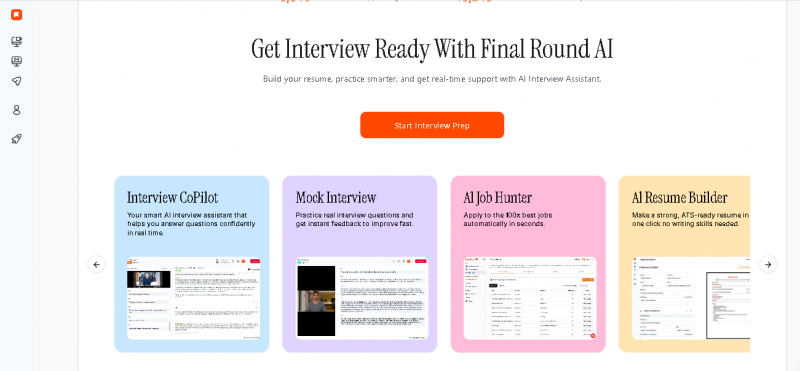 Final Round help job seekers practice, prepare, and perform confidently throughout the hiring process. It combines real-time interview assistance (Interview Copilot), mock interview simulations, automatic job discovery and applications, intelligent resume creation, and career tools like salary insights and question banks all in a single workspace. Its goal is to reduce interview anxiety, improve performance, and accelerate job offers for users across industries and roles.