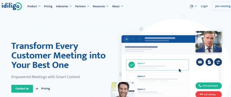 Idiligo enables creation of sales scripts containing online meeting features such as presentations, forms, choices, autogenerated documents, and emails. These scripts structure meetings to achieve predictable results for channels. Users distribute scripts to reseller sales teams for execution in browser-based sessions without software downloads. Scripts follow a logical order of features, with options for customization or use of predefined Network Scripts. The platform synchronizes data with external systems and supports real-time collaboration in customer advice processes.
