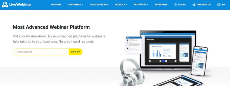 LiveWebinar provides tools to organize, stream, and promote interactive webinars. It enables screen sharing, live streaming to platforms like YouTube and Vimeo, and recording sessions in Full HD with personal cloud storage. Users access meetings via browser without downloads or plugins, from devices including laptops, smartphones, tablets, and smart TVs. Registration occurs through customizable pages and one-click links, with options for email templates, QR codes, and closed captioning in over 50 languages. Evergreen webinars run automated events with live chats. Customization includes branding, logos, and white-label platforms under user domains. Live streaming supports 360° cameras and embedding on websites.