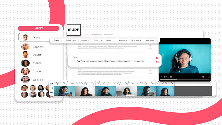 Murf Voiceover generates human-like voiceovers using a text-to-speech model. Users select from 200+ realistic voices across 20+ languages and accents to produce audio for videos, podcasts, audiobooks, and ads. The platform provides a studio for script editing, voice customization including pitch, speed, emphasis, and pronunciation, plus addition of royalty-free music. It supports uploading videos or scripts, generating output in seconds without recording equipment or editing skills. Advanced options include voice cloning, changer tools, API integration, and video dubbing into 40+ languages.