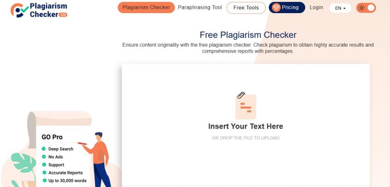 Plagiarismchecker.co scans submitted content against billions of web pages to identify similarities and measure originality. Users can paste text or upload files in formats like PDF, DOC, and Word from devices, Google Drive, or Dropbox, then review uniqueness scores along with detailed reports showing plagiarized portions highlighted in red with source links. It evaluates word frequency, sentence structure, and phrasing for duplication patterns using advanced AI algorithms that deliver results in seconds. Reports are downloadable for sharing. Premium features extend checks up to 30,000 words, add file/URL comparison, enable team collaboration with multiple user logins, and offer citation tools in MLA, APA, or Chicago styles. Multilingual support covers widely used languages, and files remain private without server storage.