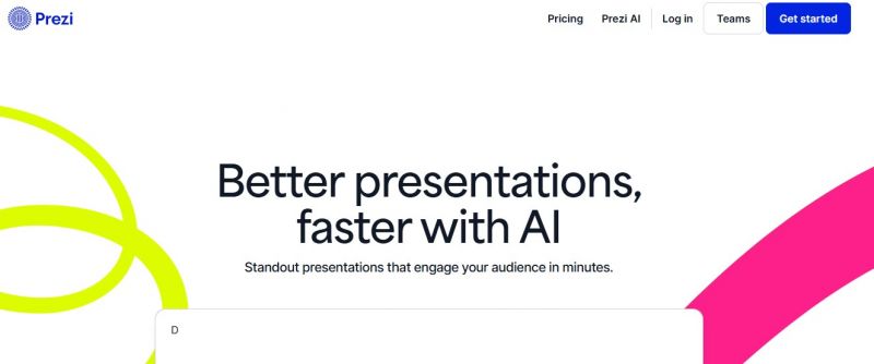 Prezi provides presentation software for creating interactive presentations on an open canvas with dynamic movement. It uses AI to generate full presentations from prompts, offers personalized recommendations, and provides customized templates. Users transform content into visuals with over 1 million images and GIFs, apply frame designs, and navigate in any order. Prezi Video combines presenter and content on screen. The tool sets itself apart with its zoomable canvas, moving away from linear slides to engage audiences more effectively.