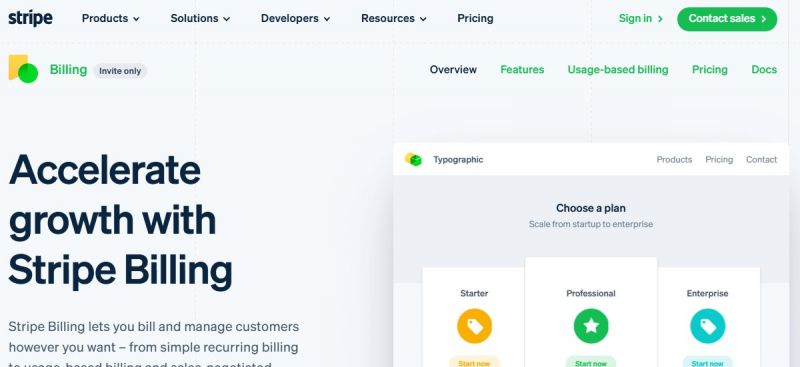 Stripe Billing handles recurring payments and subscriptions with support for flat rate, usage-based, and hybrid pricing models. It enables setup of subscriptions via Dashboard, Payment Links, Checkout, or custom integrations. Users meter usage and track consumption in real-time with the Meters API. Flexible billing logic supports experimentation with pricing structures across fixed-price, tiered plans, and consumption-based models. Automation covers invoicing, dunning, and payment recovery. Pricing follows pay-as-you-go at a percentage of billing volume or annual subscription plans paid monthly.