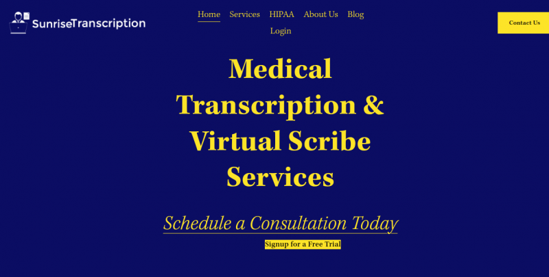 Sunrise Transcription provides medical transcription and scribe services for doctors, clinics, medical research centers, physicians, and hospitals. It handles online medical transcription with 24/7 coverage and same-day turnaround time. Services include EMR/EHR transcription with integration into systems like Practice Fusion, CareCloud, Epic, and others. Dictation occurs via toll-free phone line, handheld recorders, or mobile apps for iPhone and Android. Delivery options cover web-based secure server downloads, network transfers, and EMR interfacing. Transcription charges 6 cents per line with no setup fees or monthly minimums. Virtual scribe services and AI-enhanced scribes convert patient conversations into structured notes for EHR signature after quality review.