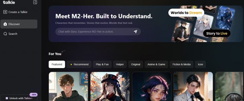 Talkie lets users chat with customizable AI characters that retain memory and respond conversationally. From fantasy figures to roleplay personalities, the system offers diverse interactive experiences using both text and voice, supporting creative storytelling, personality exploration, and multi-topic dialogue