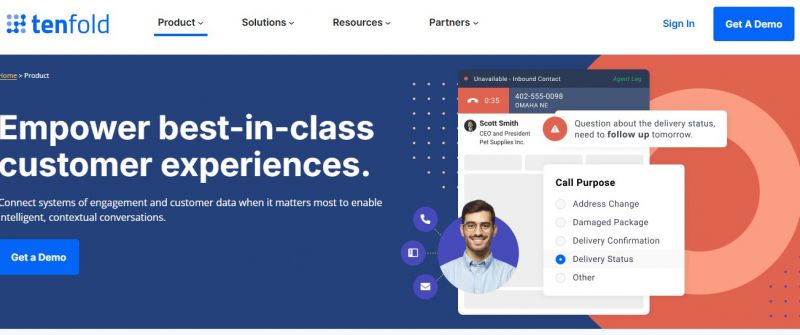 Tenfold connects systems of engagement and customer data to enable intelligent, contextual conversations. It logs all customer interactions and notes automatically in the CRM. The Click-to-Dial feature ends manual dialing. A single interface provides access to script pop-ups, note taking, and workflow automations. Reps gain full customer context at every interaction point. The platform unifies siloed customer and team data across enterprise systems. Deployment options include Embedded UI, Chrome Extension, and Desktop App for Mac and PC. Metrics show reductions in agent workflow steps, increases in productivity, and ROI from CRM or comms platforms.