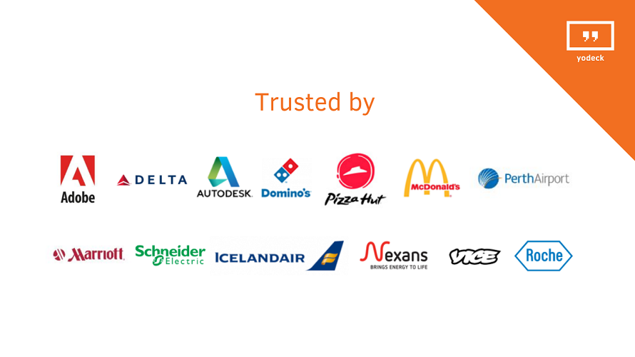 Yodeck is digital signage software that empowers businesses to engage audiences with dynamic content, offers remote screen management, and boasts a diverse clientele, including Adobe, McDonald's, and Delta Airlines.